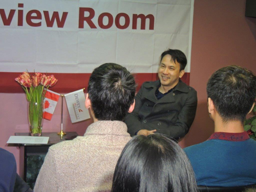 能和明星歌手面对面,学生们掩饰不住内心的兴奋,尤其是访谈主持人,酷爱吉他的学生Jim王法尊,详细准备了想请教的问题。虽然已经是名人身份,但是谢枫却平易近人,让学生们感到就像在和一位好友在促膝谈心一样。身为流行音乐的专家和歌者,谢枫的每一个观点和看法都是一针见血,对于飓风乐队的定位,炬煋演艺公司的定位,如何和观众更好地互动,如何给多伦多带来更多跟优质的音乐氛围,这些问题都经过了清晰的思考,并且都在切实的进行之中。