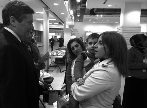 “面对那些来到加拿大的难民,我再一次保证,我们的社区和各级政府将密切合作,帮助你们使用这些变化,尽快融入到加拿大。尽管这里气温比你们家乡要冷的多,我相信你们会从你的新邻居那里感受到热情的欢迎。”