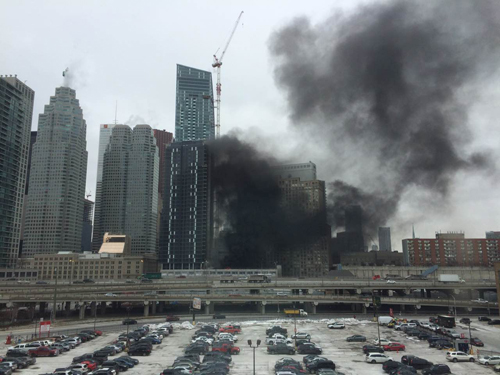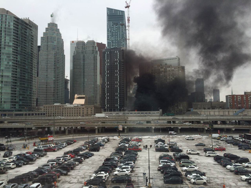 今天中午前,多伦多市中心浓烟滚滚,一处停车场失火,地点在Esplanade与Yonge交界,非常靠近大家熟知的Sony 演绎中心。据多伦多消防部门介绍,该三层楼的停车场,位于一个在建的建筑物后面。幸运的是,大火在我们报道时被熄灭了,感谢消防人员的高效,否则后果不堪设想。至于起火原因,尚没有相关报道。