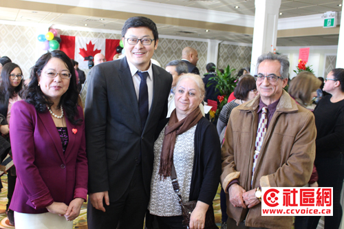 特别值得一提的是,谭耕同僚,也是邻近选区国会议员,Scarborough-Agincourt国会议员陈家诺和Willowdale国会议员Ali Ehsassi亲临支持;安省旅游、文化与运动厅厅长,Don Valley East省议员Michael Coteau来到现场祝贺;同时,Don Valley East市议员Shelley Carroll也是谭耕的坚定支持者。去年谭耕竞选办公室新张时,厅长与Shelley Carroll均到场支持。