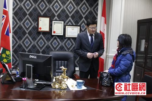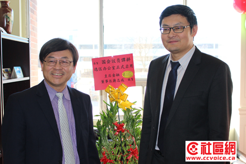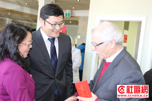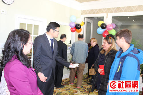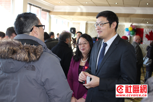 1月23日下午,来自Don Valley North的选民、省和市府议员、邻近区国会议员及社区侨领数百人齐聚国会议员谭耕全新办公室,见证揭幕开放。记者提前一刻钟达到,没想到现场已经聚集好几十人,大家非常激动。正逢农历新年到来之际,工作人员还为大家精心准备了红包。记者也发现,正式开张这一天,就有选民咨询,谭耕仔细回答了他们的提问,直到选民满意为止。
