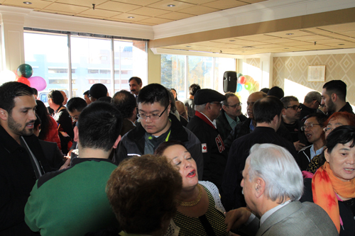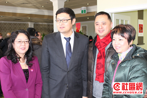 从下午2点起,谭耕携夫人一直站在入口处,欢迎大家的到来,并与大家一一合影留念。对于绝大部分来客,谭耕都十分熟悉,许多都能够亲热地叫上名字,问候一番。华人社区部分侨领与成功企业家,包括加拿大同乡会联合总会会长俞荧、北京协会会长杨宝凤、四川同乡会会长刘熹、多伦多华文媒体工作者协会会长郭然、瑞邦国际金融总裁廖子蔚、皇后金融集团总裁蒋志诚等来到现场,见证这一历史时刻。