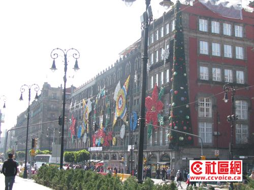 在大教堂的右侧隔一条马路是墨西哥的国家宫。国家宫最初为16世纪阿兹特克皇帝莫泰佐马二世所建,西班牙人来到后,将总统府设在了这座曾经的帝国宫殿中,并将其改建为中庭宽大的宫殿。墨西哥独立后,这里成为总统府所在地。这座在不同时期始终作为国家中心的建筑,其居住者的几经变更,见证了墨西哥统治者的更替。