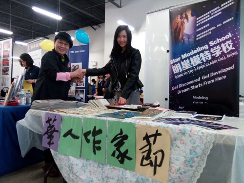一直在华文写作圈很活跃的陈萍老师也在此设了一个摊位用来宣传“华人作家节”。她说,多伦多有相当多有名气的中文作家,他们不停地通过写作来传播华文,传播华人思想,这是传播中华文化的一股重要力量。因为新春年会的推广效应,她希望让过多的人了解这些作家,同时也希望通过设立华人作家节来创作出更多更好的华文作品。