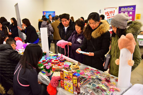 围绕着主会场,周边的区域设置了众多的摊位,有教育类、金融理财类、法律咨询类、书籍类、艺术品类、化妆保健类、电子类等等,每一个摊位前都游客在咨询购买,熙熙攘攘的人流让商家的工作人员忙碌不停。来自一课后托儿学校的负责人说,这已经是她第二次来设摊了。今天接触了很多家长和孩子,利用这个机会,他们把学校向众多的家长做了介绍,现场就有好多家长确定意向,$70的摊位成本,让他们感觉到这确实一个性价比非常高的推广活动,其它类似的大型活动,其成本要高出这里的数倍。