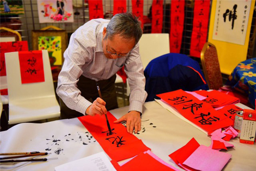 文化传承是新春年会的主题之一,春联也是春节不可缺少的符号。在书法艺术现场,艺术家们免费书写了众多的春联和福字送给游客,还带来了不少书画作品供展览。一位书法家说,春联不仅是春节的象征,而且还集中书法、文学、设计等艺术于一体,是中华文明所特有的文化现象。他们很高兴地看到,随着大家对传统文化的重视,贴春联在华人社区中越来越普遍,很感谢同乡总会能组织这样的平台让他们与游客直接交流。