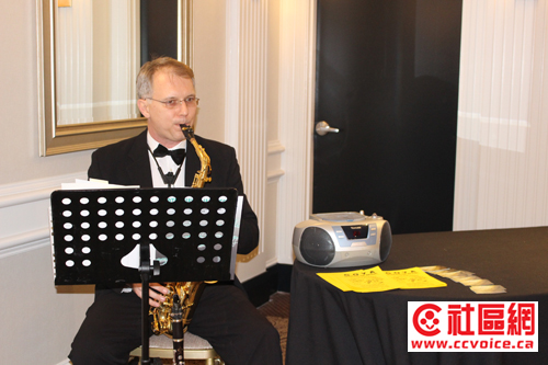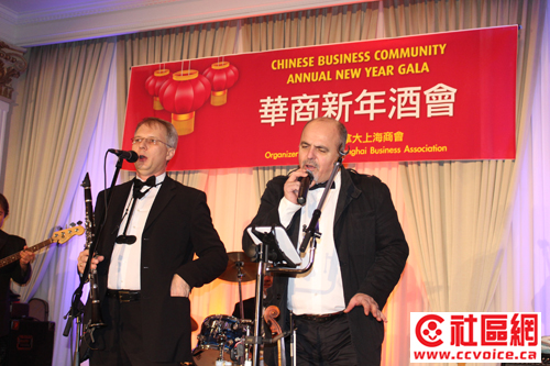 近7点,来宾进入到宴会厅。在主持人菲菲和柯飞翔简单介绍之后,晚宴正式开始。在乐队的伴奏下,常务副会长郑文立高歌加拿大国歌,激情满满。在加中国歌演奏之后,郑文立代表上海商会理事会,以“梦想和爱”为题,不仅介绍了当年上海商会创办的秘密,而且简要回顾过去16年上海商会献爱心的各种创举,令人钦佩。