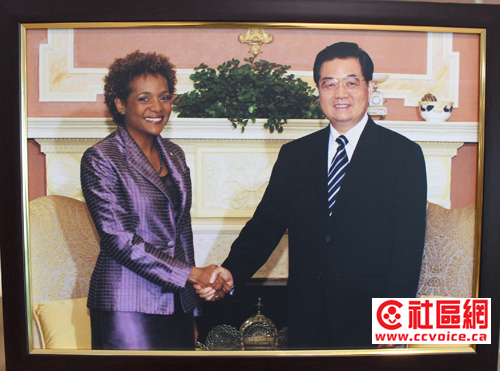 2010年6月24日中国国家主席胡锦涛在渥太华会见加总督米夏埃尔-让