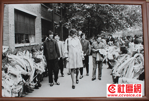 1973年10月12日Pierre Elliot Trudeau总理的夫人在中国国务院副总理李先念夫人林佳楣陪同下参观北京市北海幼儿园