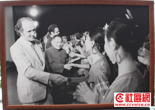 1973年10月12日Pierre Elliot Trudeau总理在邓小平副总理陪同下观看舞剧“红色娘子军”,结束后加总理走上舞台,祝贺演出成功