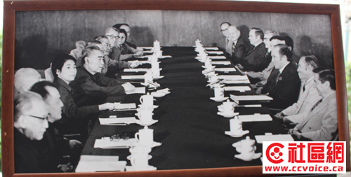 据了解该次图片展涵盖从1970年以来,加中两国45年的交往和发展历程。其中部分黑白照片展示两国建交初期,加总理Pierre Elliot Trudeau总理首次访华,与毛泽东、周恩来、邓小平等领导人会谈场景。以及加总理在中国各地访问画面,其中还有现任总理Justin Trudeau的儿童照。当然,近几年来中国后几代领导人,包括江泽民、朱镕基、胡锦涛来加拿大访问,以及数位加总理访问中国的资料。最新照片为现任总理Justin Trudeau与习近平主席在去年11月16日会谈照片。