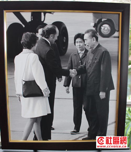 1973年10月10日,加总理Pierre Elliot Trudeau和夫人抵达北京,中国国务院总理周恩来到机场迎接。这是中加两国建交后,加总理首次访华