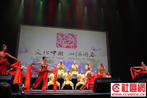 2月27日晚,2016新春大型综艺晚会“文化中国,四海同春”(Chultures of China, Festival of Spring)在多伦多市中心Sony Centre成功举行。该次活动由中国国务院侨务办公室和中国海外交流协会主办,多伦多专场由中国驻多伦多总领事馆和多伦多华人团体联合总会本地支持,加拿大国籍电视台承办,加中文化发展协会协办和多伦多华星艺术团写作完成的。