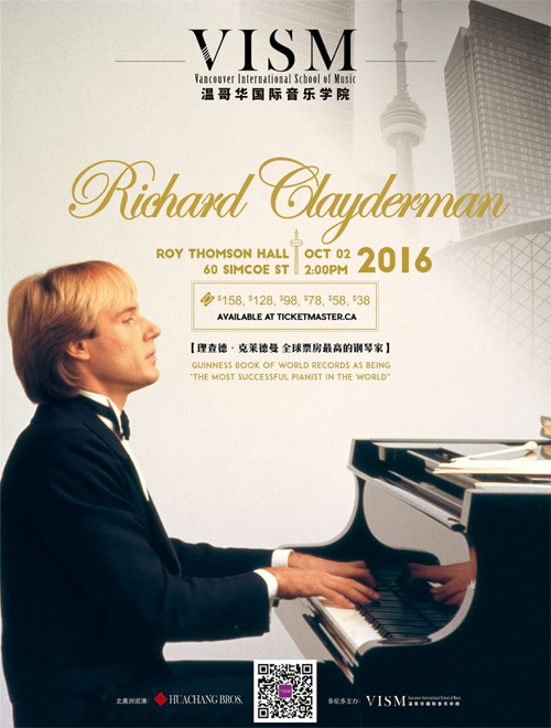 10月2日,享誉全球的钢琴家理查德克莱德曼将震撼奏响多伦多Roy Thomson Hall,并由此拉开他首次北美巡演的帷幕。克莱德曼出生于法国巴黎,5岁时开始习琴,6岁时指法已非常纯熟流畅,被誉为天才,随即进入巴黎国立音乐戏剧学院学习。1990年,法国电视台“90之星”评选,他以一曲重新编曲的《给爱德琳的诗》风靡全球,获得唯一的金钢琴奖,该单曲在38个国家创造了2,200万张的销售奇迹。