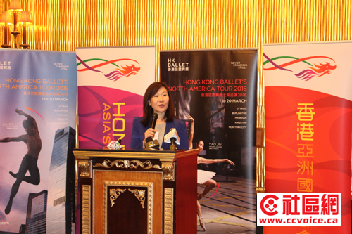3月10日,香港驻多伦多经济贸易办事处(简称经贸处)在为当晚即将在万锦剧院演出的香港芭蕾舞团举办传媒招待会。据介绍,香港芭蕾舞团建立与1979年,目前已成为一个广受国际赞誉的亚洲古典芭蕾舞团。该舞团不但能够体现香港充满活力的特征,更能够彰显香港东、西文化共冶一炉的特色。从出席招待会的舞者看,有来自中国北京的首席舞蹈家金瑶,还有来自万锦的Jessica,以及日本的舞者,当然也有香港本土演员。