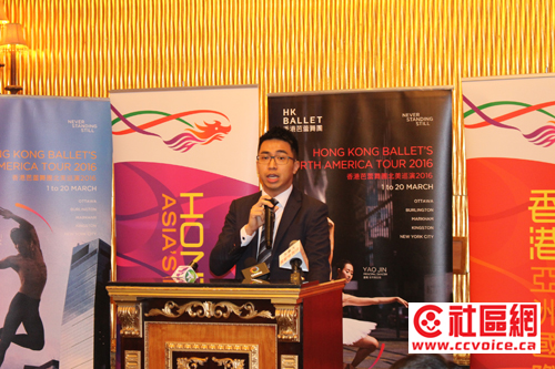 经贸处副处长蔡志杰介绍说,“香港芭蕾舞团刚刚结束在渥太华和Burlington的演出,非常出色。其优秀表演再次证明他们是一支别具香港独特色彩的优秀压轴芭蕾舞团。该次北美巡演从3月1日开始,首演在首都渥太华,最后一站在美国纽约。”