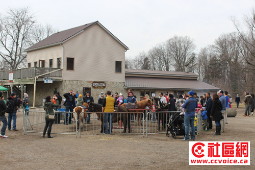 今年的活动规模并不少,尽管没有热气球,也没有狗拉雪橇的示范,但是天气之后,让小孩子们能真正放飞心情,玩乐无极。由于记者的身份,正常票价$8也给免了。枫糖节的常规活动包括有Hiking trails(在枫叶树林间的小路上漫步)、Petting zoo(在动物区轻拍抚摸小动物)、Horse-drawn wagon rides(乘坐马车,马车乘坐体验区)和Sap samplings and maple syrup demonstrations(品尝枫糖浆,以及了解枫糖浆制作过程)。