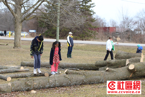 玩乐之后,公园里有各式各样的球。儿子挑了一个球,先当作排球,我们以树干当网,玩了半个小时。而女儿在一旁拿着树枝,玩了半天。等女儿感觉枯燥时,我们三个人一起玩足球,一直到他们筋疲力尽时,我也差不多了。打道回府,春假第一天就这么过去了。假若有读者向前往,Bruce’s Mill的地址在3291 Stouffville Road, Whitchurch-Stouffville, ON L4A 7X5,好像在Warden和Kennedy之间。