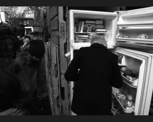 在蒙特利尔市Rosemont 区,一个居民区的小巷里出现了一个邻里共享的 “集体“ 冰箱。4月3日这个居民区举行了一个小小的启动仪式,有几十位居民参加,一个大冰箱被固定在木质框架里,冰箱里已经装得满满当当:有面包圈(Bagels)、青椒、芦笋、甘蓝、橘子、柠檬、花椰菜、牛奶、豆浆 …等等。这个集体冰箱还有自己的名字:“Le Frigo des Ratons”(浣熊冰箱)。