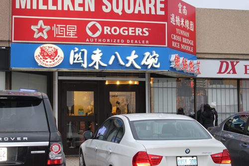 不一会儿,P给笔者发来了一个地址,19 Milliken Boulevard, Scarborough, ON M1V 5H9。朋友P解释说,你到了就可以看到一个大招牌“八大碗”。不过要快一点,菜马上要上了。笔者是多伦多通,知道这是Finch与Kennedy东北角的Mall里,但餐馆名称没有听说过。