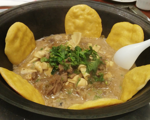 餐馆位置有些特别,在一个小型Mall里面,旁边是小商店、理发店等,在多伦多还真是难得一见。找到招牌,步入大堂,看到朋友P和一批熟人正在热火朝天地吃着。笔者落座,先吃了再说,究竟肚子早就有些饿了。