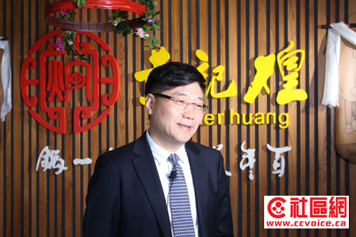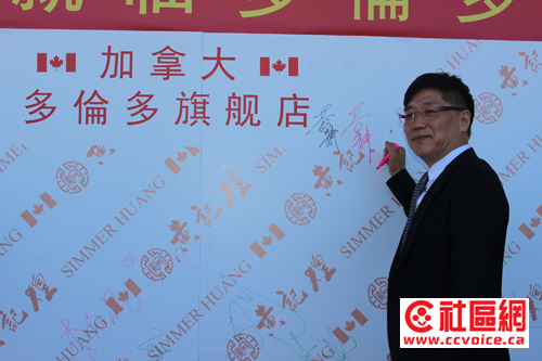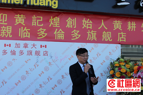 列治文上市议员陈志辉先生讲话并赠送贺词