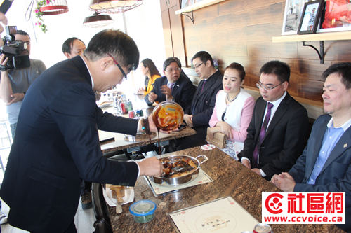 在4月17日的开业庆典上,黄耕先生从北京远道飞来,不仅积极回答记者问题,接受访谈,而且亲自动手,为嘉宾和媒体准备了精美午餐。在制作的当中,黄耕先生为嘉宾和媒体讲解每一道工序的秘密和由来。
