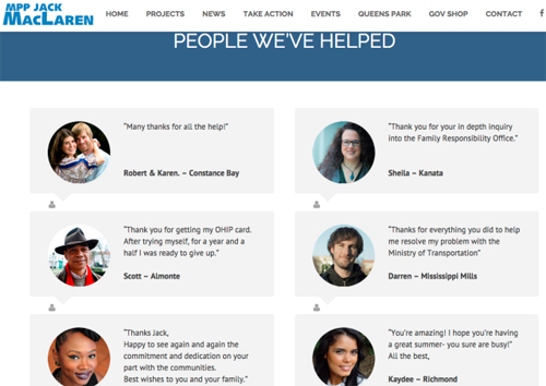 近日安省保守党省议员麦克拉伦(Jack MacLaren)连续爆出丑闻,先是麦克拉伦在庄重的抗癌基金会慈善晚宴上,当着现场三百多名嘉宾在台上讲黄色笑话,拿自由党女国会议员开恶俗玩笑,令当时场面及其尴尬。随后,又爆出该议员在其网站上张贴虚假的选民表扬信,被揭发那些选民的名字和图片都是不真实的,被揭发之后,该网站全部关闭,不再透露出任何其他信息。