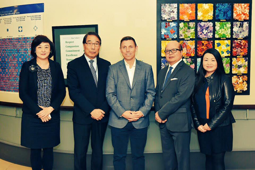 颐康基金会总裁萧显扬(左二)、安省进步保守党党魁彭建邦(中)与颐康中心首席行政总监康威(右二)合照