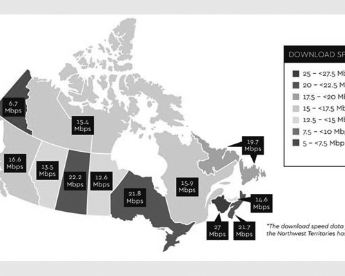 根据对加拿大全国6万个地点的测试,加拿大各地的互联网速度有很大差别。总体而言,西部比东部慢。这12万6千次网速测试是2015年5月和12月之间由一些普通互联网用户进行的。他们使用的是加拿大互联网注册管理局提供的一款网上工具。这款工具测试了体现互联网表现的数十项指标,包括上传和下载速度。
