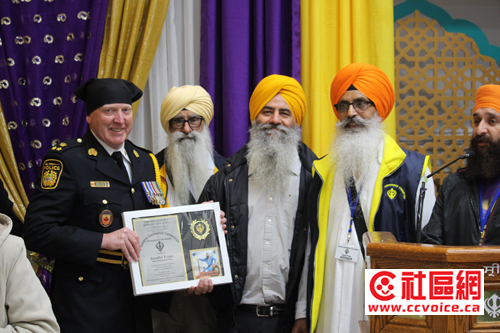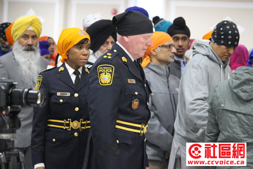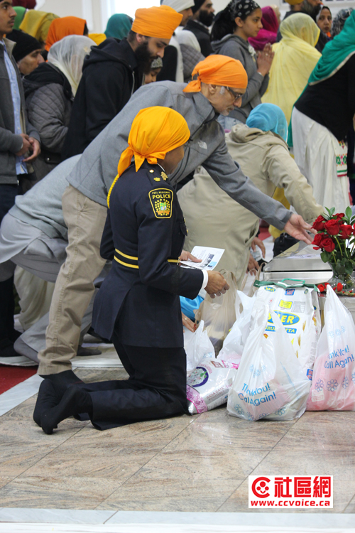活动地点在Malton(也就是夹在Mississauga和Brampton之间的区域)的锡克族的寺庙,叫做Malton Gurdwara。从外面看,占地面积不少!沿着Airport路往北,过了Derry路不远,这个寺庙就在路的西边。还没有到达入口,就看到警灯闪烁,警车已经将进入寺庙的路口封堵,一般参与者需要将车泊在周边小街,不醒前往。