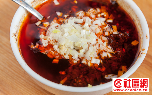 同时将姜剁细碎,放入盆中,放入豆瓣酱、甜面酱和辣椒粉搅拌均匀,倒入烧开的色拉油,搅拌。锅中留油,把剁泡椒放入,再放入搅拌好的姜末,炒香,再放入糖、醋,搅拌均匀。