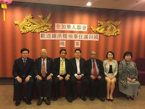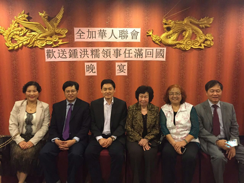 5月13日晚,全加华人联会举办隆重晚宴,欢送中国驻多伦多总领事馆钟洪糯领事任满回国。作为特邀成员,加拿大云南总商会会长朱燕率部分骨干参与,借机表达商会对钟领事多年来对社区的支持与关心。在晚宴之初,全加华人联会主席钟新生致辞,盛赞钟领事在多伦多工作期间,对全加华人联会及其他华社所做的杰出工作。