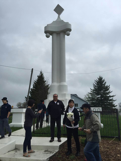 参观完社区中心之后,大家一行步行前往Alderville战争纪念碑(Alderville War Monument),敬献鲜花。该战争纪念碑落成于2927年9月25日,当时吸引本地及周边社区、部分政要,超过3,000人聚集一起,纪念在The Great War(1914-1918)中逝去的人们。