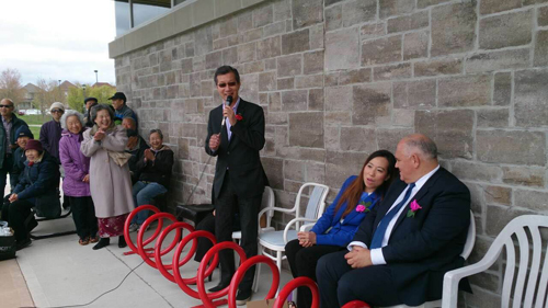 因为母亲的伟大,母爱的神圣,尊敬的移民厅长陈国治先生、万锦市长薛家平先生、市议员杨绮清女士、律师江邦固女士也满怀喜悦参加了聚会,并分别讲话,均大赞长者对社区付出的努力。又赞扬万锦市第六区长者协会不单只为长者作为声音桥梁,亦带来了很多欢乐!把长者聚在一起,不愁寂寞!市长和江律师的精彩表演赢得热烈掌声!为了今天的聚会,不少老人家放弃休息自己制作纸花,会上苏太会长代表大家向80岁以上母亲代表和贵宾敬献了胸花。