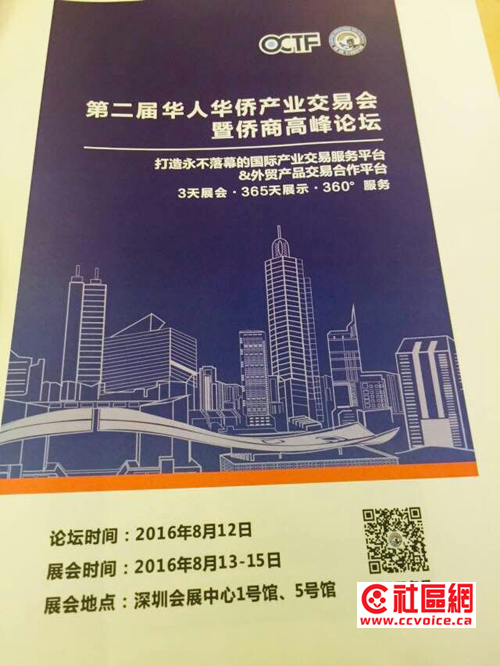 同时,主办方也积极推荐即将在深圳举办的“第二届华人华侨产业交易会”(简称“侨交会”)。这是由深圳市侨商智库研究院发起、联合香港中国商会等多家商协会及社团组织共同举办的。侨交将于8月13-15日在深圳会展中心隆重举行,其口号是打造永不落幕的国际产业交易服务平台与外贸产品交易合作平台。本地有意参加侨交会的商家请与加拿大深圳联谊会或者加拿大深圳总商会联系。