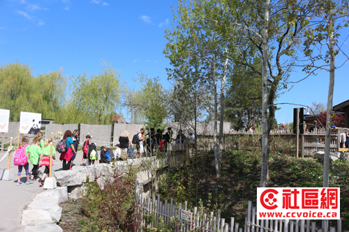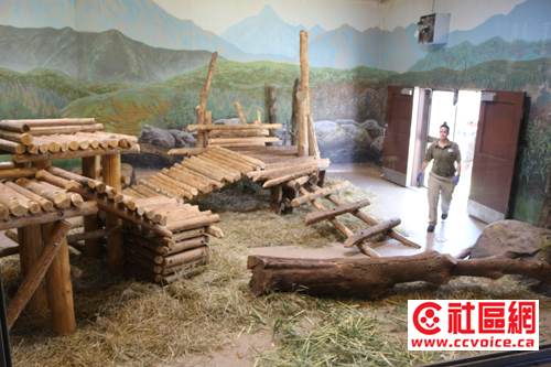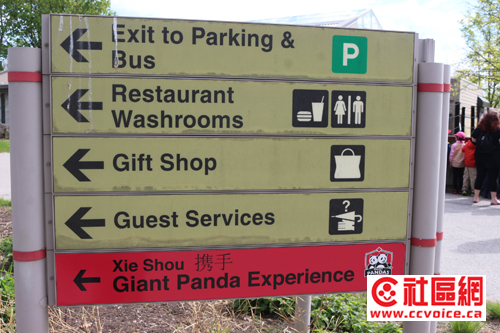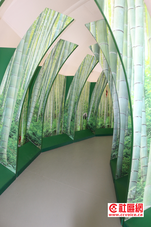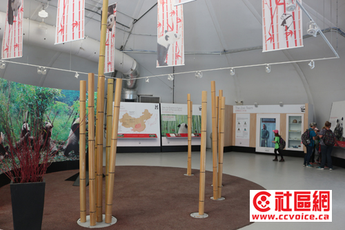 第一,去动物园看过大熊猫的读者估计都会感受到,作为VIP,大熊猫的待遇还是蛮高的。从远远可以看到的熊猫馆(Giant Panda Experience)的大门,里面安置有中华传统特色的12生肖图案,再往里就是装扮富有熊猫特色的体验馆,当然与大熊猫相关的信息都集中在这里展示。然后穿过一个非常特别的廊道,似乎在竹林中穿越,就往大熊猫的生活馆走。无论是室内,还是室外,大熊猫生活馆看起来也是多伦多动物园最好的。