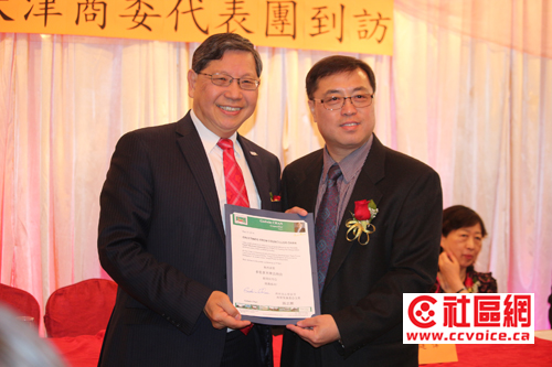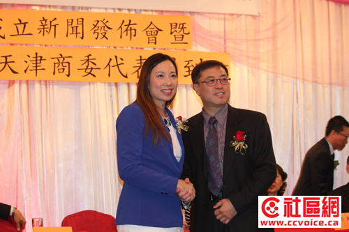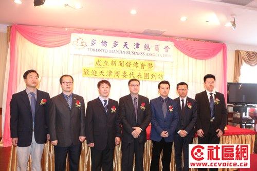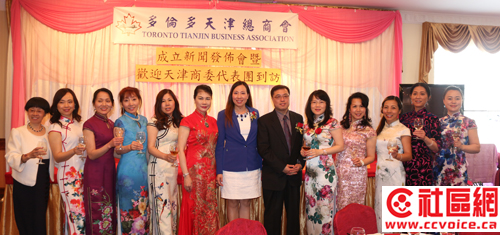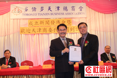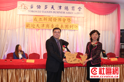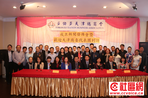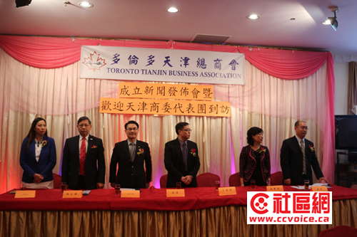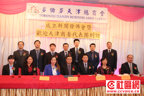 5月20日中午,多伦多天津总商会在世纪皇宫酒楼举行成立大会以及天津商委代表团欢迎宴。中国驻多伦多总领事馆商务参赞于建伟、列治文山市议员陈志辉、万锦市议员Alan Ho和Amanda Yeung Collucci、国会议员谭耕代表、天津市商务委员会副主任高丽娟和外企处副处长卢涛先生出席,见证总商会的成立。