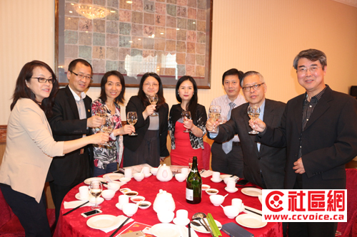 接下来,市议员Alan Ho,Amanda Yeung Collucci和陈志辉一一上台致辞。大家盛赞多伦多天津总商会的成立,一定能够为安省,特别约克区与天津的合作做出杰出的贡献。代表天津商委,卢涛副处长做了热情洋溢的讲话,期待与多伦多天津总商会合作,促进天津与加拿大之间的经贸交流合作。由于从另一个活动赶来,珊珊来迟的于参赞乐见天津总商会的成立,一定会为本地华商与天津的交流和合作坐好桥梁作用,并希望天津商委到访加拿大取得圆满成功。