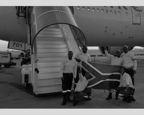 这3百名南非男女灭火队员是乘坐加拿大航空公司Air Canada7007航班抵达埃德蒙顿的,飞行里程差不多是1万6千公里。这些南非灭火队员预定在麦克默里堡地区参加两个星期的灭火工作;两个星期之后他们有可能延长在加拿大的灭火工作时间。