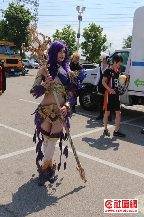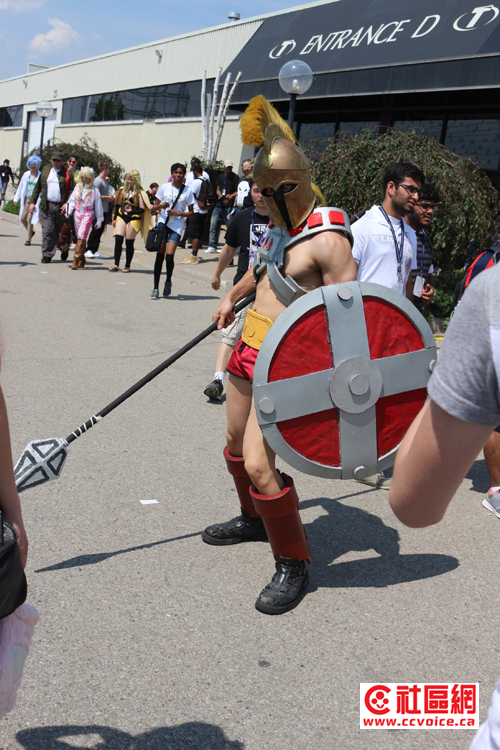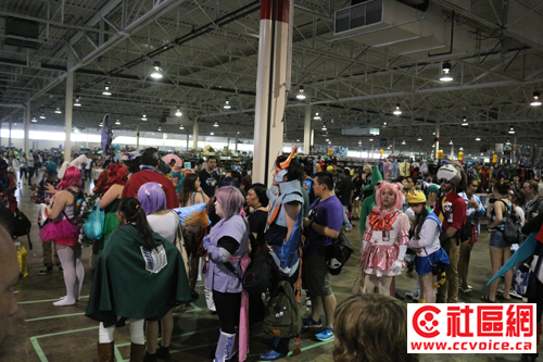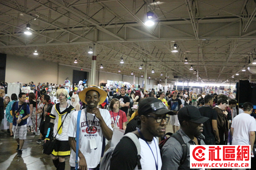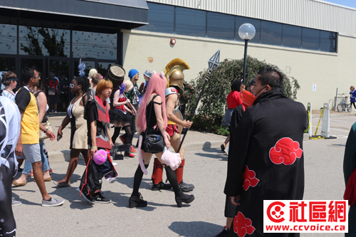 记者从409拐入Dixon,然后往西南走。我到达的时间差不多是1点半,外边太阳狠毒,记者不得不开着空调行驶。但在Dixon路上,行人如云,而且大多是年轻学生,他们中的许多还穿着奇装异服(其实这些都是游戏或动漫中的角色),拿着道具。特别是Dixon往Toronton Congress Centre拐入处,人流更多。越往里走,人越来越多,似乎整个Toronto Congress Centre都被人群包围着。