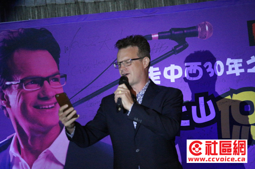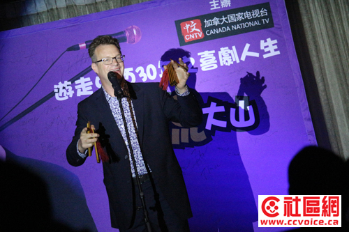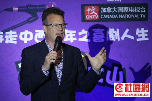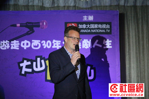 谈到自己学中文,大山介绍说高中毕业后在渥太华一家华人照相馆工作,因而接触到华人与中文比较多。在这里,他甩出的包袱有两点,引发大家哄笑。第一,他将粤语和普通话叫做老百姓说的话和政府官员说的话,诙谐地告诉大家他最初学的是粤语。当然,在学习语言中,大山也指出骂人的话可能是最容易学到的。第二,加拿大和中国教育制度反着说,也就是前者是应试教育,而后者是鼓励式教育。不过,扪心自问,他说的还真有几分道理,听到西人说上简单一两句中文,我们中的绝大多数都会很自觉伸出大拇指赞扬或者使劲鼓掌吗?