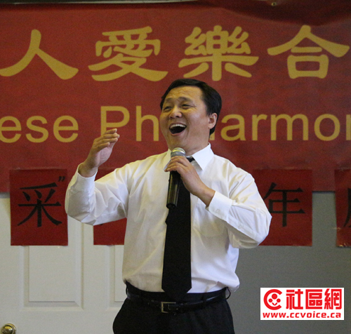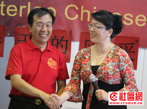 晚餐之后,活动在6:30正式开始。滑铁卢华人联谊会前主席苏立明代表现任主席潘刚讲话,肯定了爱乐团在过去六年的成长及其所取得的成绩,盛赞他们在活跃社区生活,支持社区发展中所做出的杰出贡献。苏立明特别指出,爱乐团指挥姜星宇每次都从贵湖赶过来,指导大家排练,任劳任怨,劳苦功高;首任团长高超功不可没,为合唱团的发展壮大做了许许多多的工作;祝贺向春霆博士荣升团长,呼吁大家像支持张超团长一样支持新任团长,让爱乐团迈上新台阶,再创辉煌。