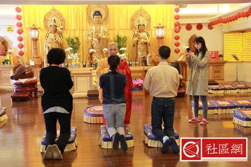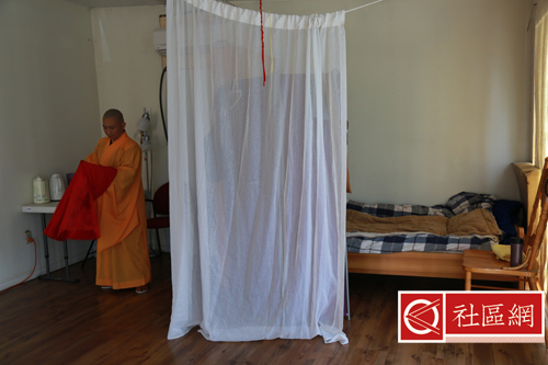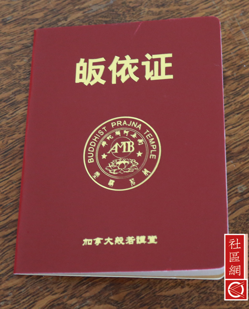 餐厅里一座硕大的巨型铜钟引人注目,真的是“晨钟暮鼓,每天都需要敲吗?”我问,“是的,这是每天必须的事情!”法师给我讲解寺院的作息时间表:1)5:30-7:00早课; 2) 7:30早餐;3) 7:30-8:30出坡,也就是打扫庭院;4) 8:30自修,包括颂经、抄经、打坐;5) 12:00午膳;6) 12:30-13:30午休;7) 13:30-16:00自修;8)18:00晚膳;9)19:00-20:30晚课,主要是诵经;10) 20:30自修诵经;11) 22:00养息。作息时间看起来很轻松,但对于事必亲躬的照续法师来说,有时忙起来连饭也顾不上吃。比如,在我吃饭的时候,有信众等在那里要做皈依仪式。法师草草地吃完饭,披上袈裟奔向大殿,我背了相机匆匆跟着法师,记录下皈依仪式的全过程。今天皈依的是一位老太太,仪式非常庄重。到今天我才了解到,皈依并不只是念几句经,在佛前磕几个头就算数。法师要再三向皈依者讲解皈依的戒侓,皈依者需在佛祖前立下誓言,最后每个皈依者都有一本证书,证书上有皈依戒侓、编号和公章。