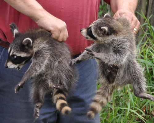 我不想惊动它们,也不希望它们逃走,当然也不敢自己去抓拿。没有办法,只好操起电话,给Kitchener抓捕Raccoon专家打电话求援。专家反应倒还是十分迅速,半个小时不到,他就赶过来了。