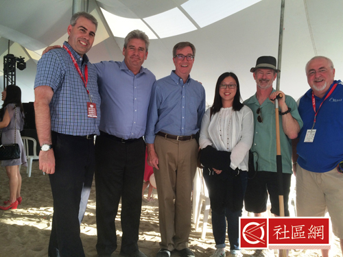 陈纳思与省议员John Fraser(左二)、渥太华市长Jim Watson(左三)、龙舟节主席兼行政总裁 John Brooman(右二)以及其他嘉宾合照