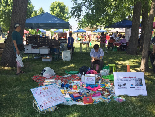儿童用品跳蚤市场也是今年华夏节新增的一个项目。十多个家庭积极参与,将家里闲置的二手儿童用品如儿童书籍、玩具、溜冰鞋、推车等物品拿来半卖半送、助人又益己。于女士9岁大的女儿Jennifer更是利用这个机会献爱心,把所售物品所得全部捐给癌症基金会用于癌症治疗研究,并在现场号召更多的热心公益,帮助他人。