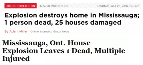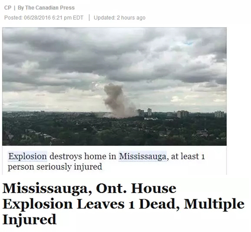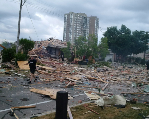 爆炸发生在6月28日下午4:20左右,地点在Hickory Drive,也就是靠近Dixie Road和Rathburn Road East交界处。据报道,其中一栋民宅夷为平地,周边25栋民宅受到不同程度的损害。目前报道一人死亡,其他人幸运均是微伤。