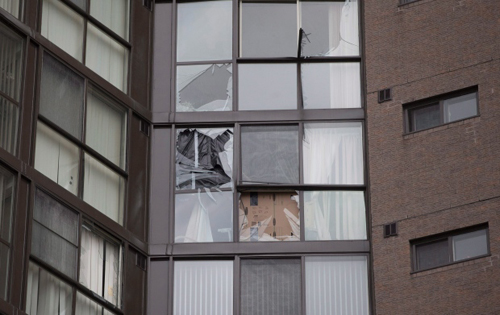 远处高层公寓玻璃被震碎