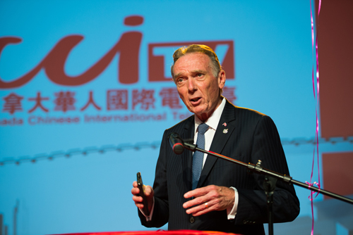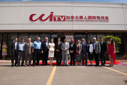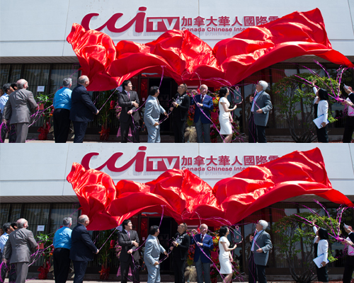 中华人民共和国驻多伦多总领事馆薛冰总领事通过视频向加拿大华人国际电视台的开播表示热烈祝贺。他寄语CCITV要为弘扬中华文化,构建和谐华人社区,促进两国经贸和文化交流、促进融合,发挥积极的作用。联邦参议院胡子修也发来贺信,对华人国际电视台的开播表示衷心的祝愿。多伦多天津总商会等各大商会也纷纷到会表示祝贺。